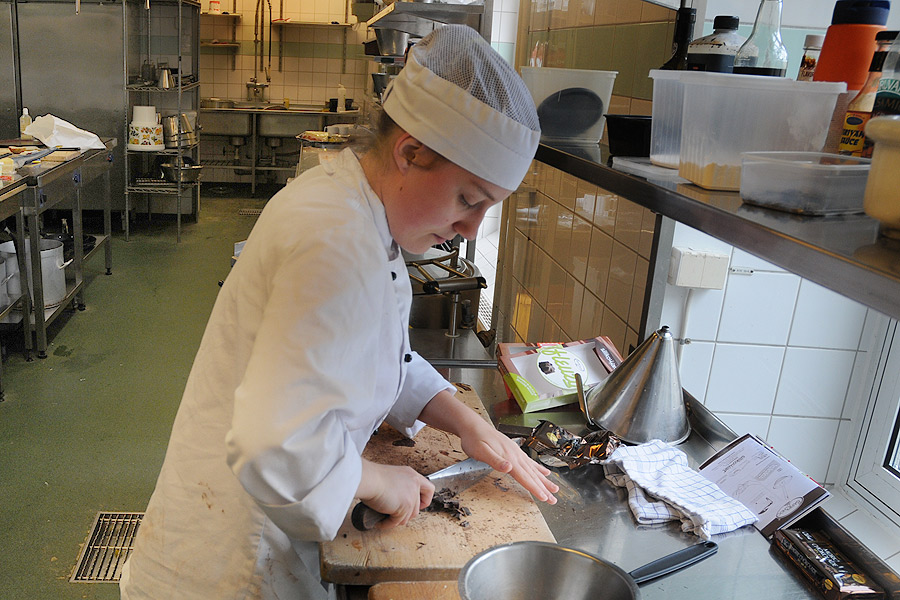 – Jag är egentligen kockelev med jag behövdes även här. Dessutom har jag jobbat mycket mot sponsorerna så jag har inte varit med fullt ut i köket. Därför hjälper jag till lite överallt, säger Alexandra.