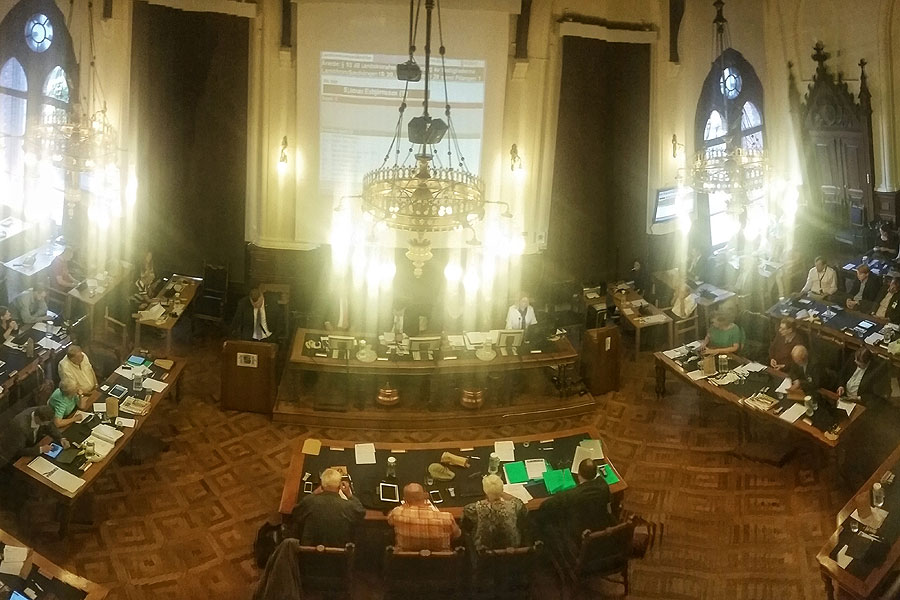 På fullmäktigeläktarna fanns inledningsvis ett 30-tal personer men när mötet efter drygt två timmar nått fram till § 103 Landskronahems försäljning av fastigheter hade åskådarna tunnats ut med hälften. Det ska sägas att det var otroligt varmt på läktarplatserna som i övrigt heller inte har inbjuder till någon komfort i de gamla träbänkarna. En timme in i debatten fanns endast en handfull åhörare kvar och alla skötte sig klanderfritt.