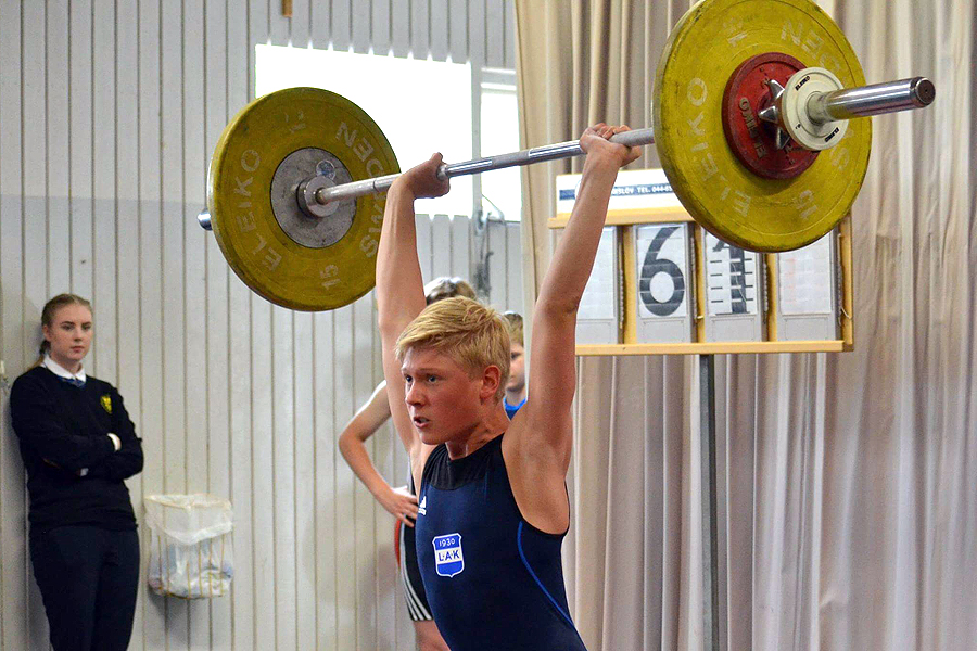 Alex Ankargren Hertler, viktklass 50, tog personligt rekord i både ryck och stöt med 18 kg i ryck och 23 kg i stöt.
