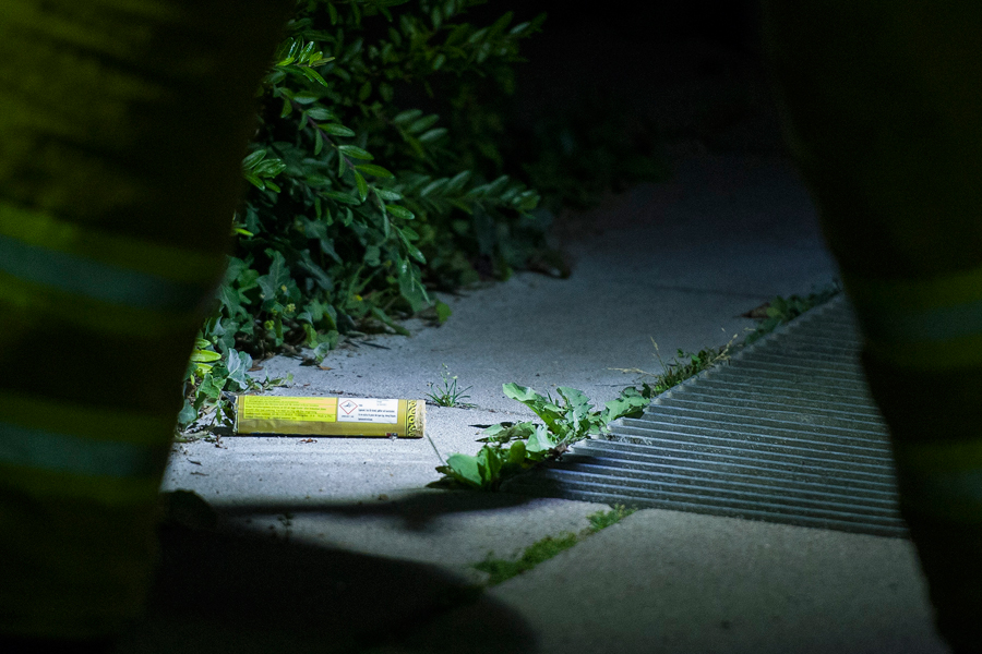 På plats visade sig att någon kastat in något brännbart genom brevinkastet. Väktare som larmats till inbrott på skolan var först framme och gjorde en insats med pulversläckare. När räddningstjänsten kom fram skickades rökdykare in för att kontrollera att branden var släckt och inte spridit sig. Sedan vädrade man ur lokalen från rök och pulver. Någon form av fyrverkeripjäs hittades i anslutning till entrén. Väktare upptäckte även en uppbruten dörr på baksidan.