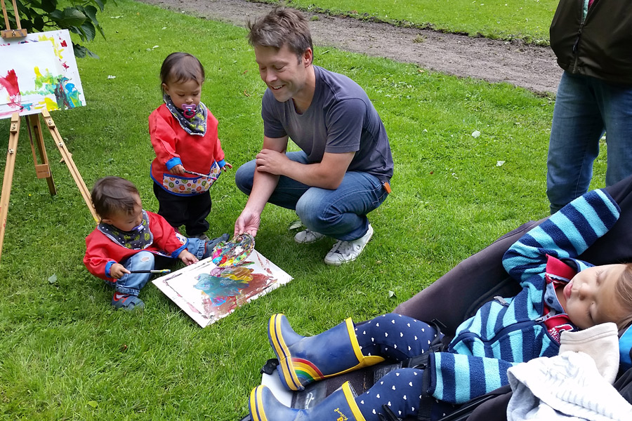 I dagarna tre har fritid- och kulturförvaltningen arrangerat stafflimålning i Slottsparken utanför konsthallen. På onsdagen fick verksamheten flytta inomhus på grund av regn men på torsdagen stod åter ett flertal staffli uppradade och familjer dök upp med sina barn för att måla. Och visst är det populärt.
