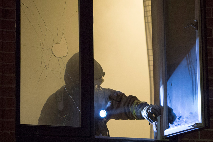 Rökdykare skickades därefter in och kunde släcka det som återstår av branden. Flera fönster öppnades och röken vädrades ut med en fläkt. Brandmännen fick bryta upp för att komma åt glödbränder.