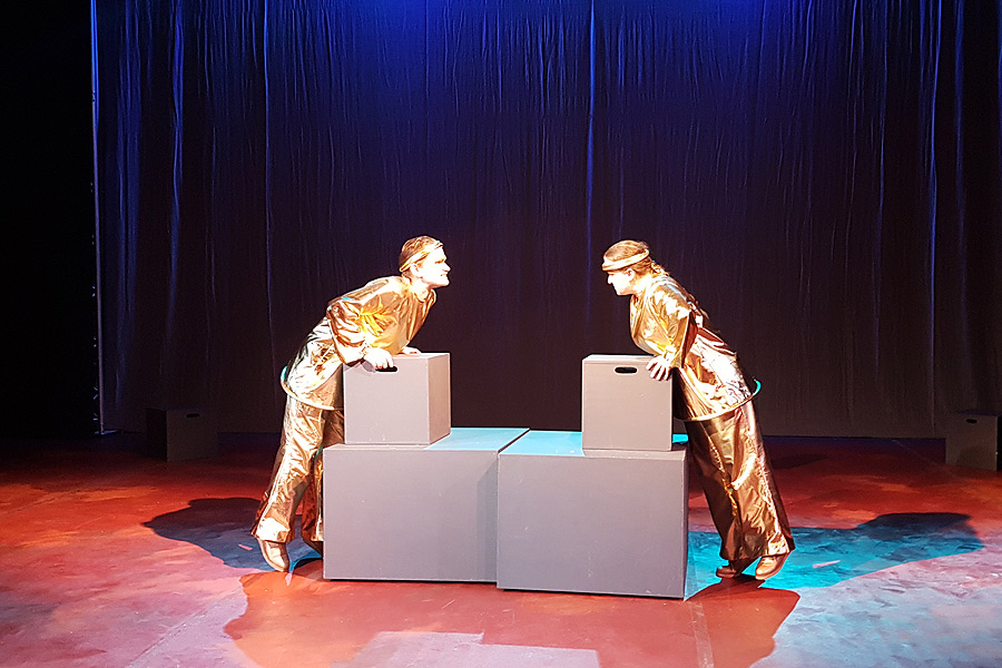 Den fartfyllda föreställningen har allt från gudar till clowner och den riktar sig till hela familjen.
