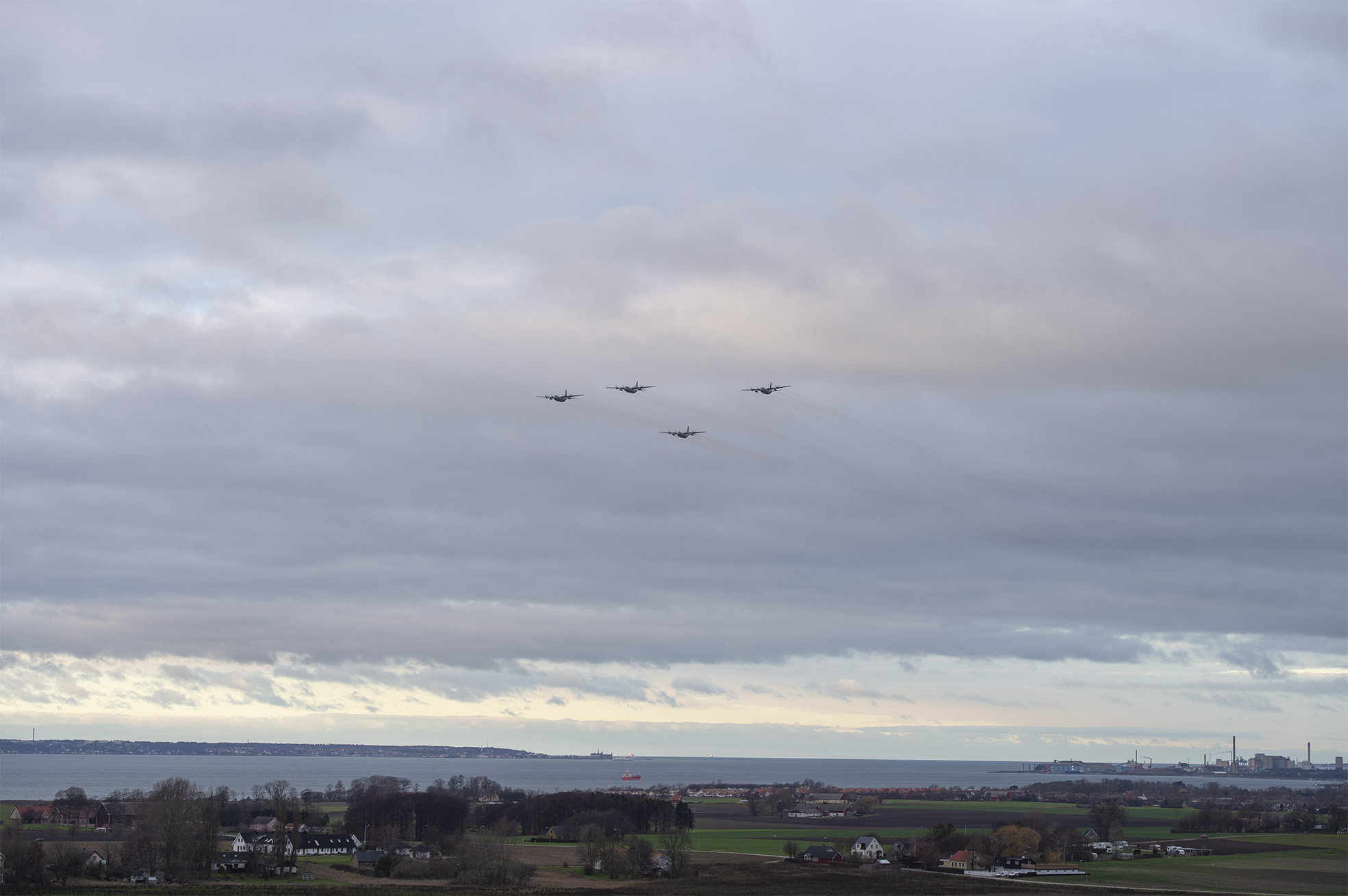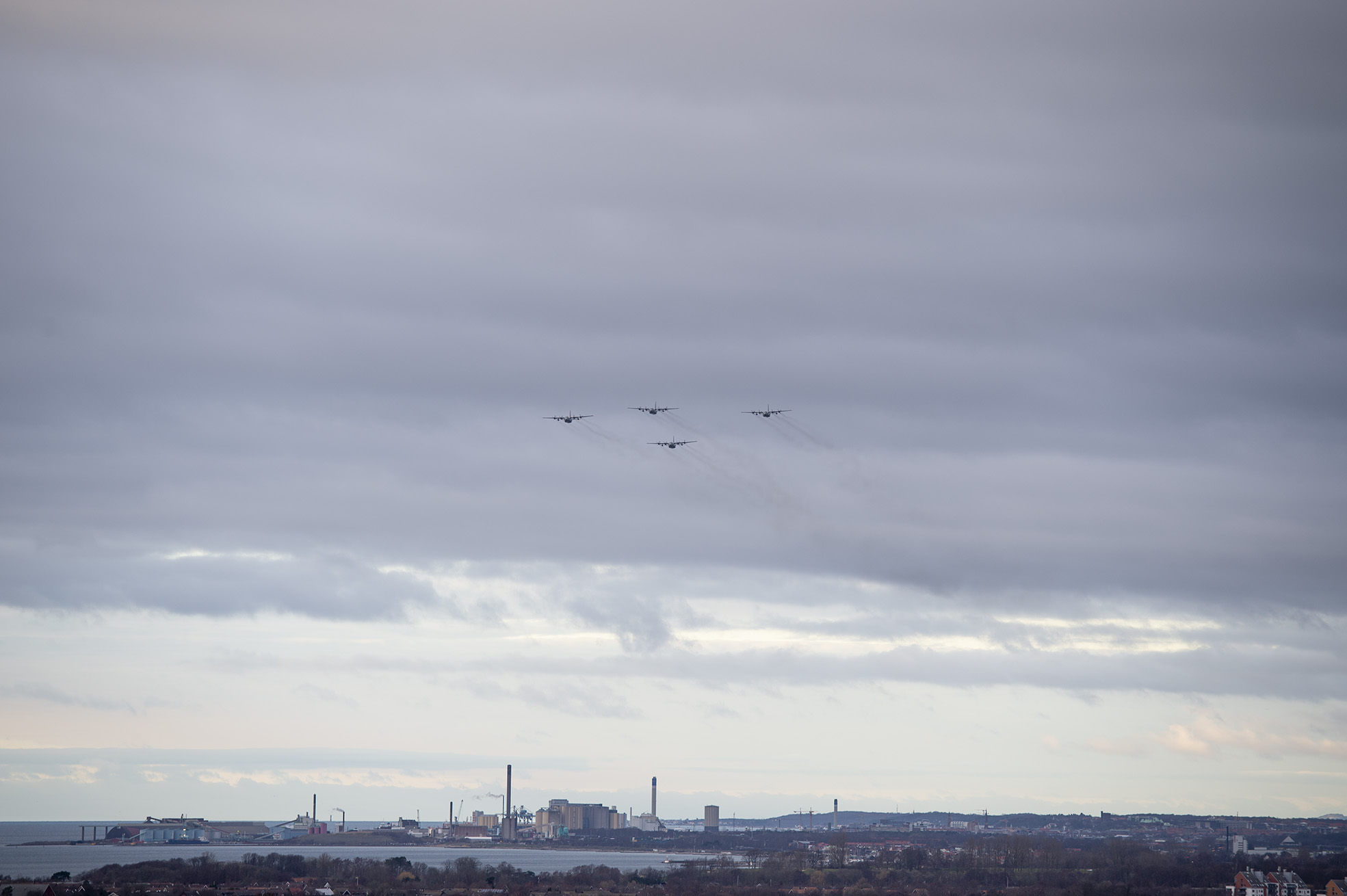 På tisdagen bjöd Skaraborgs flygflottilj F 7 på en flygande julhälsning med fyra stycken Herculesplan. På sin facebooksida benämner dem formationen som en stjärna. På plats i Glumslöv och fotograferade planen var ständigt påpasslige André Tajti.