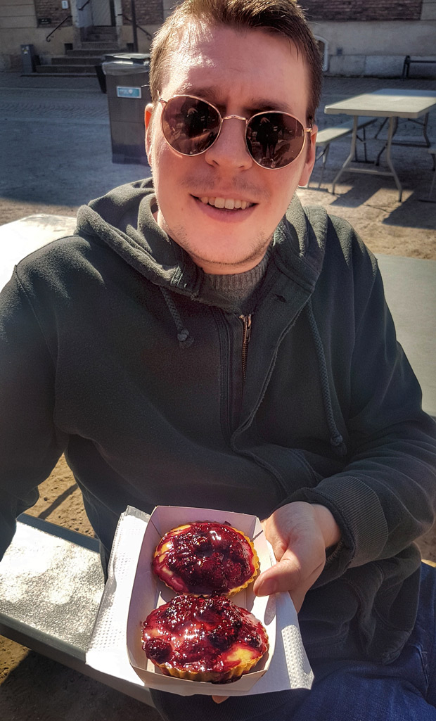 Thorsten Karlén är destinationsutvecklare Landskrona stad och han lyser ikapp med solen bland alla matstånd. Och till skillnad från François-Xavier Mauraisin så äter han sin mat på festivalområdet.