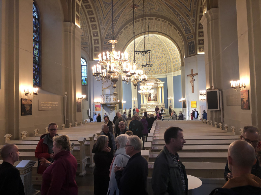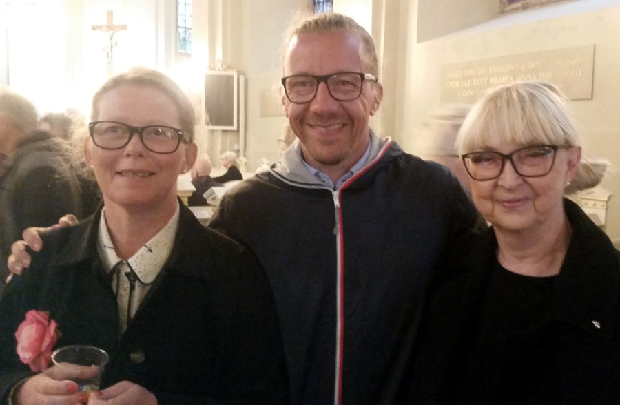 Efter barsamtalet fortsatte sällskapet över till Sofia Albertina för vernissage med Kent Wisti och hans nya utställning som kommer att finnas i kyrkan fram till den 23 augusti. Där berättade prästen och konstnären kort om tavlorna, men gav även utrymme för tolkning.