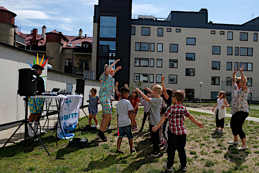 – Det går inte att hålla igen. Det är bara att släppa loss, sa Tanja Ek, fritidspedagog på PeterSvenskolan och dansade tillsammans med sina elever med i låtarna. Hasse Anderssons Guld och gröna skogar, varvades med Psys Gagnam Style och det senaste inom House och Techno.