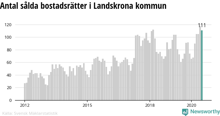 Sammanlagt såldes 111 bostadsrätter i Landskrona kommun mellan maj och juli till ett genomsnittligt pris på 1,7 miljoner kronor. I fjol gjordes 61 affärer vid den här tiden på året.