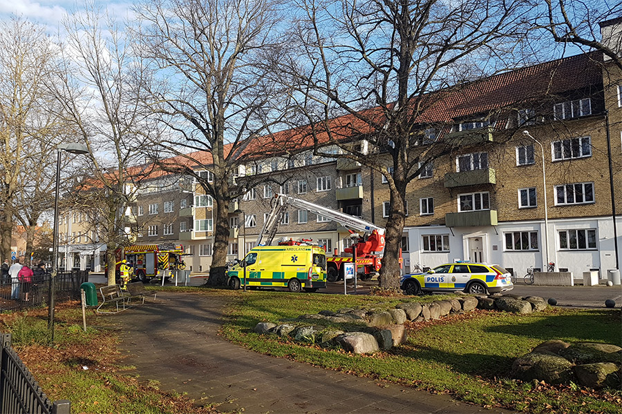 Klockan 11.16 på söndagen inkom larm om en brand i fastigheten på Regeringsgatan 8 i Landskrona. När brandkår kom till platsen var det en fullt utvecklad brand i en av lägenheterna. Denna spred sig därefter vidare uppåt i huset. Alla personer i trappan evakuerades. Minst tre personer, en kvinna i 25-årsåldern, en man i 35-årsåldern samt en tvåårig flicka har förts med lindriga skador till Lunds sjukhus med ambulans.