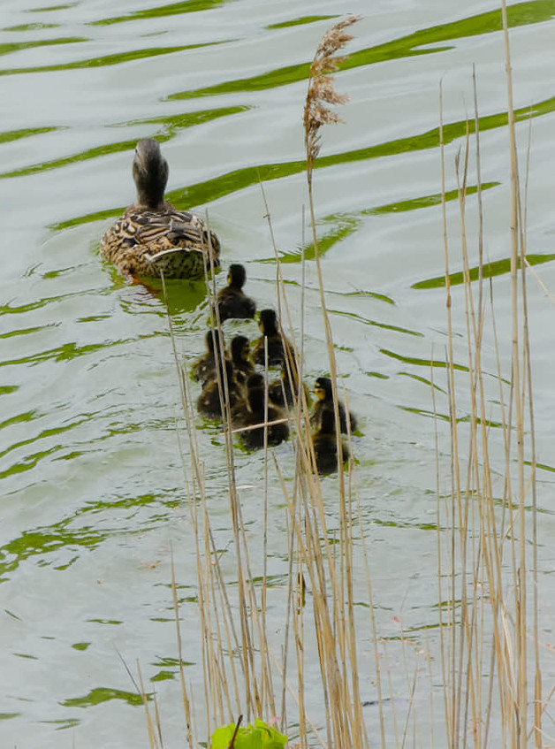 Väl framme vid vallgraven bjöds inga större avskedsceremonier utan mamman först ner i vattnet och ingen tvekan hos de små som en och en hoppar efter. Med ackompanjemang av filmande mobiler och smattrande kameror simmade familjen lugnt iväg i V-formation med Citadellområdets kolonier som finaste bakgrund.