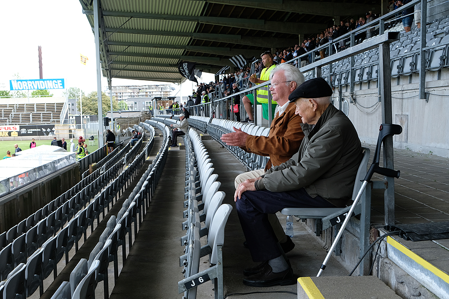 – Det är glest med folk här idag men stämningen är toppen. Detta har jag verkligen sett fram emot, sa han och leendet på läpparna från Landskrona BoIS äldste supporter gick inte att ta miste på.