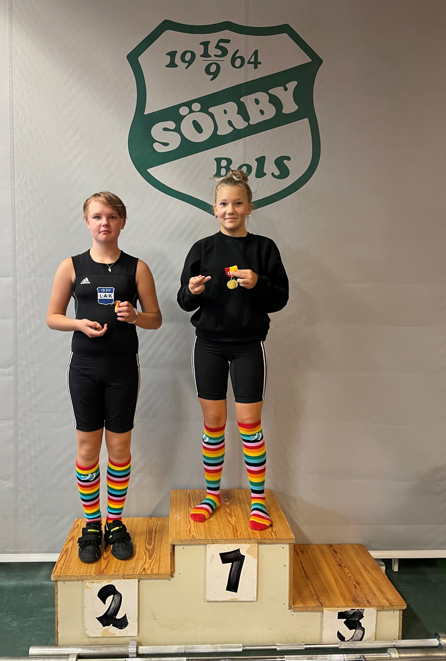 I första tävlingsgrupp tävlade LAK:s tjejer. Tindra Sandgren slog till med personligt rekord 9 kg i ryck och 11 kg i stöt, 29 kg sammanlagt vilket räckte till tre (ryck, stöt och sammanlagt) silvermedaljer i klass d45.