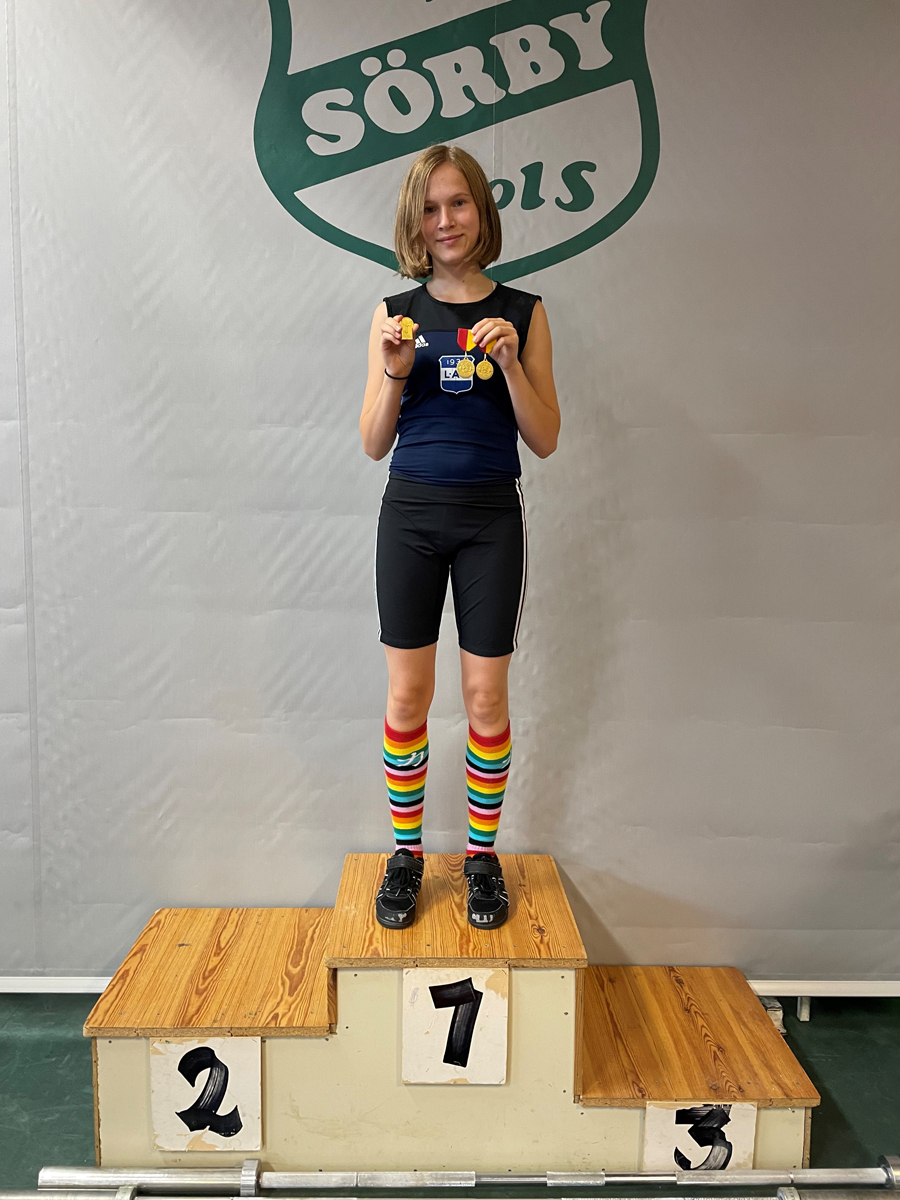 I klass d49 hade Saga Hertzberg en bra tävlingsdag och klarade alla sina sex lyft med personliga rekord rakt igenom. 31 kg i ryck, 35 kg i stöt och 66 kg sammanlagt innebar att hon plockade hem alla tre guldmedaljerna.