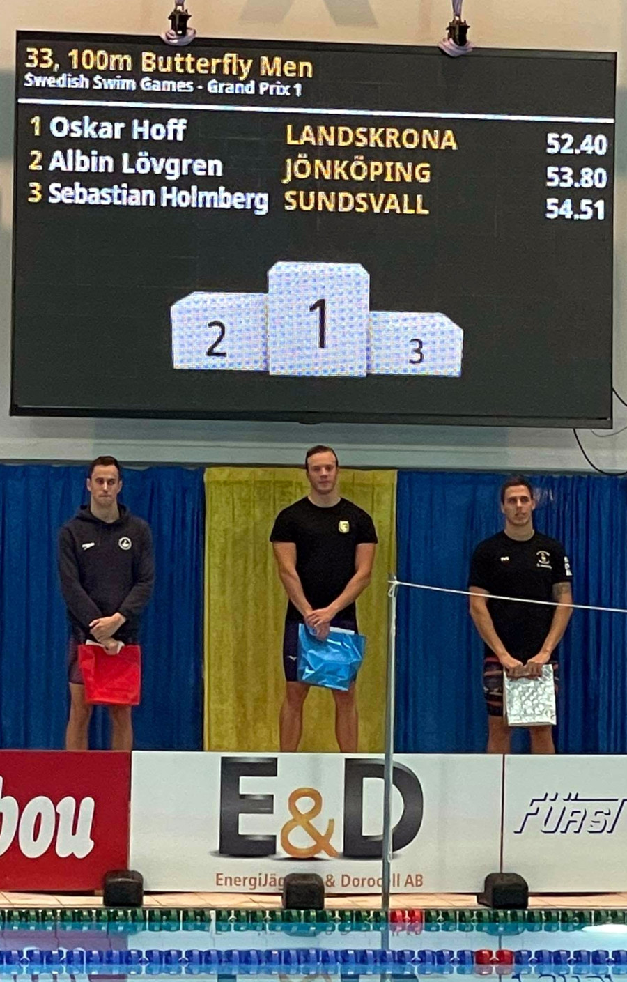 Oskar Hoff slog två klubbrekord och var nära att klara rikttiden till EM på 50 fjärilsim med fina 23.29. Tiden var endast 3/10 över Lars Frölanders svenska rekord på distansen. Han vann dessutom 100 fjärilsim på 52.40 och sänkte därmed Joakim Dahls drygt 20 år gamla klubbrekord på distansen med en halv sekund.