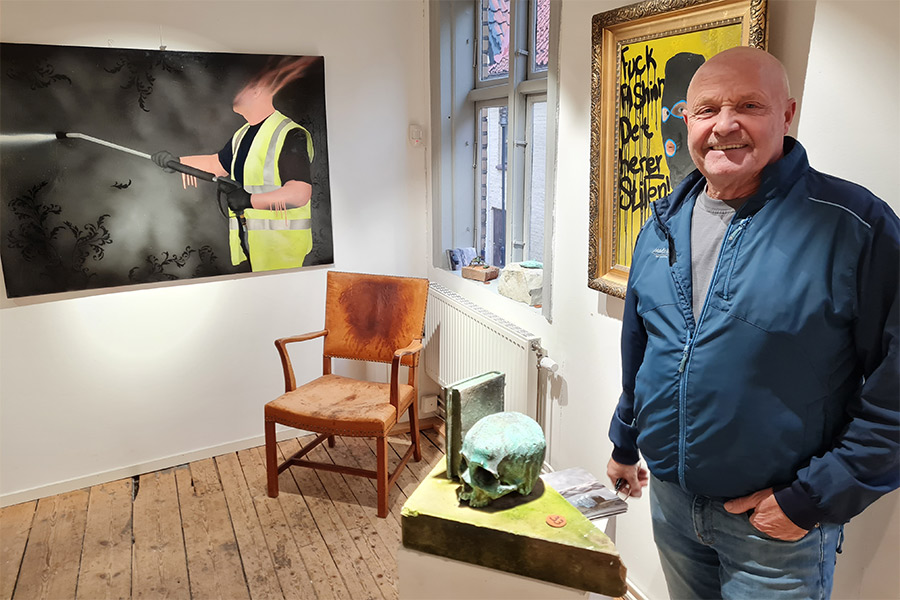 – Vi var på en utställning i Helsingborg och där träffade vi denna konstnär och tyckte han hade häftiga grejer. Det mötet har resulterat i att vi nu kan visa såväl målningar som fantastiska skulpturer.