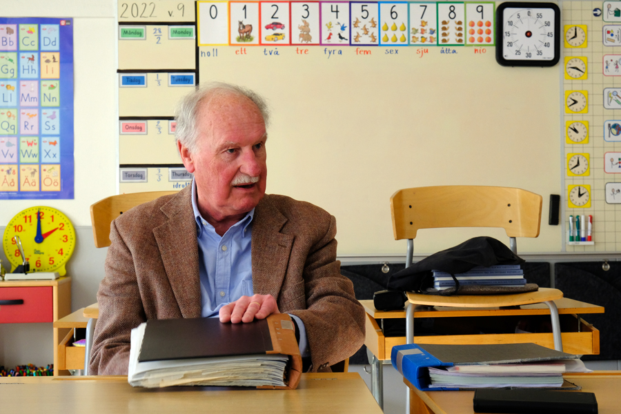 Vi sitter i ett klassrum på andra våning på Albanoskolan. Detsamma som en gång Per Alberoth lyckades lotsa undertecknad genom mellanstadiet. Det var just här klass 5B för första gången fick höra den fruktansvärda historien om Förintelsen. Nu är det den tidigare grafiske formgivaren och art directorn Christer Strandberg som håller i lektionen. I skolbänkarna sitter stadens medierepresentanter tillsammans med rektor Susanna Arroyo.