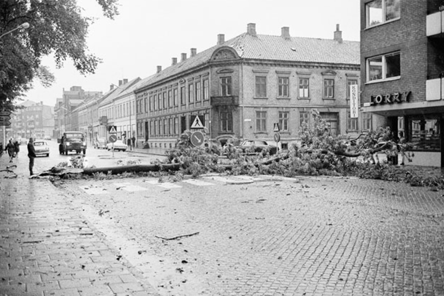 – Det måste ha varit runt 1970 eller så. Bild här är tagen i september 1967 då en stor gren låg rakt över Eriksgatan efter en storm. Och då stod huset där. Jag minns också att där var en frisör. Sen har jag sett bilder från början av 1970-talet och då var huset rivet. Det betyder att det varit parkering i 50 år. Men nu ska alltså tomten bebyggas, berättar Göran Green.
