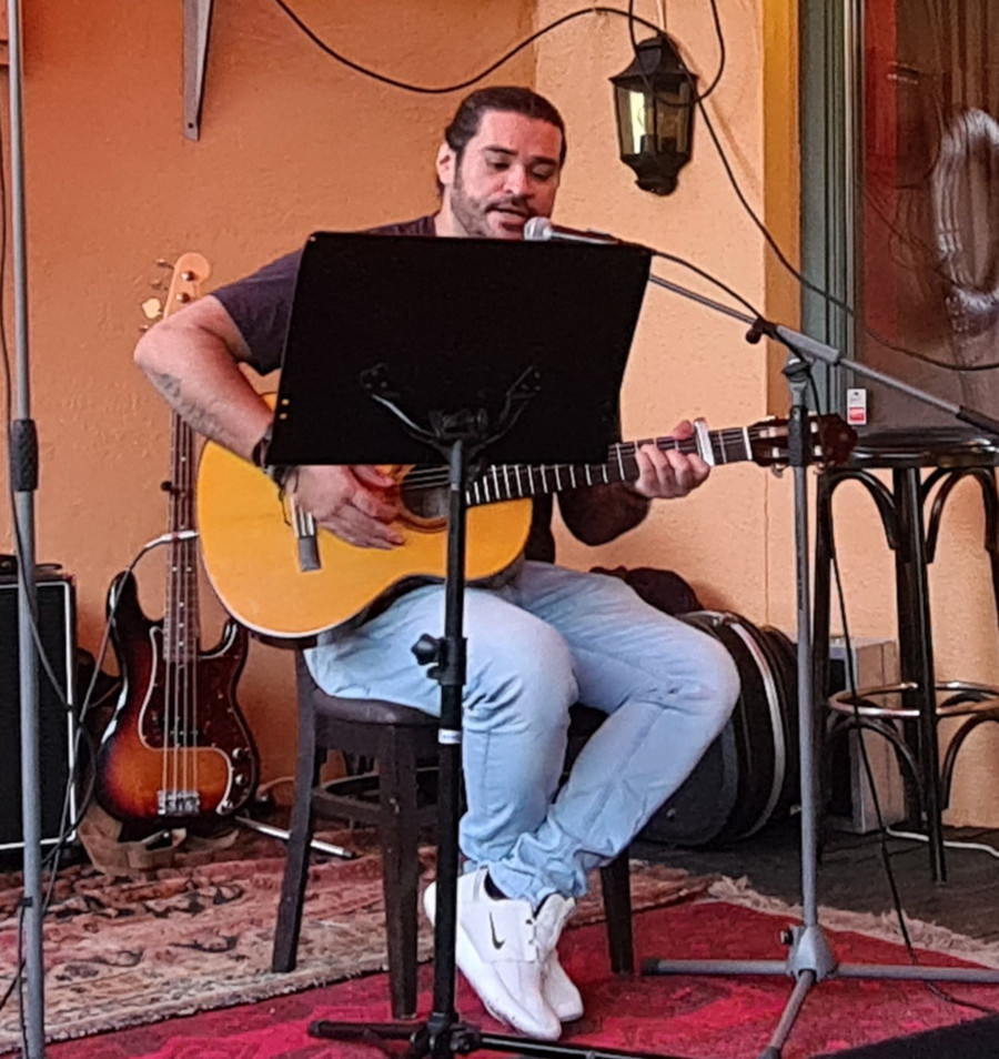 Platsen för arrangemanget var Mythos innergård och fint väder var en förutsättning för att det skulle flyta på och fungera utan att störa gästerna för mycket vid skifte av artister.