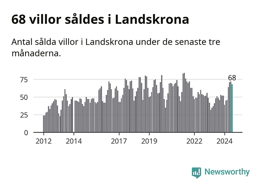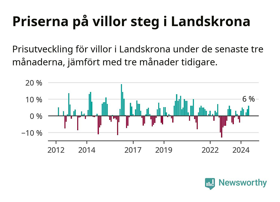 Även villapriserna har gått upp i Landskrona kommun. Medelpriset på försäljningarna under de senaste tre månaderna visar på en uppgång med 6 procent.