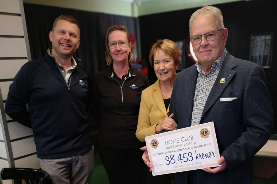 BARNDIABETES. På tisdagen fick Lions Forskningsfond Skåne för femte året i rad ta emot en check till förmån för fondens forskningsarbete. Givare var deltagarna i Lions Club Landskrona/Saxtorps välgörenhetsgolf.