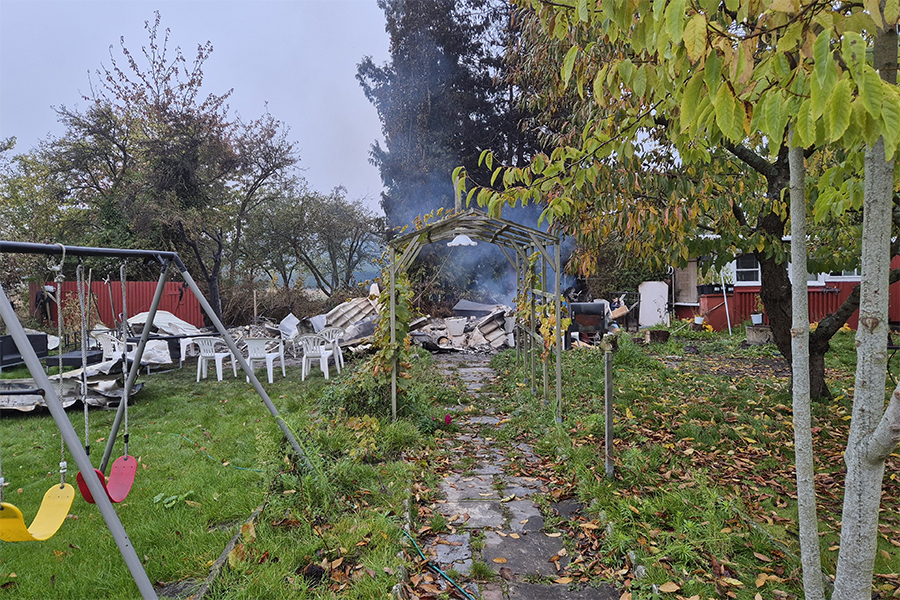 När Landskrona Direkt körde förbi koloniområdet vid 8.30-tiden rök det fortfarande i spillrorna av den tidigare kolonistugan.