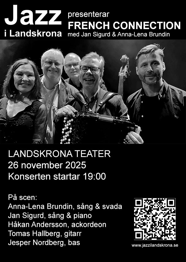 Konserten arrangerades av föreningen Jazz i Landskrona och nästa tillfälle att njuta av jazz är den 26 november då French Connection med Jan Sigurd och Anna-Lena Brundin uppträder på Landskrona teaters stora scen.