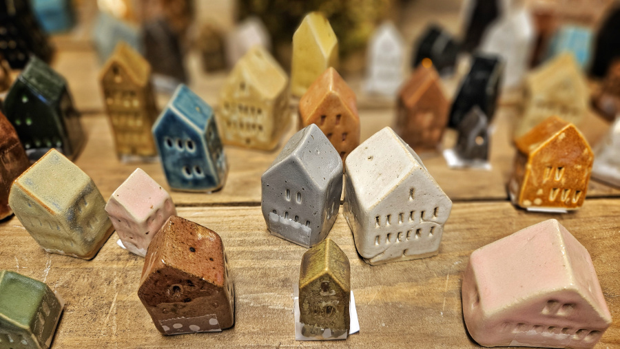 Daglig verksamheten Pjäsgatans Kreativa har tillverkat charmiga små hus och tomtar i keramik. De sprider både lekfullhet och tradition och blir en påminnelse om hemmets betydelse som plats för trygghet och gemenskap. Konstnärerna som ställer ut sina hus är Kevin Persson, Ursula Asmussen, Håkan Jönsson, Odd Ellgård, Tindra Rosén och Lilian Rydén