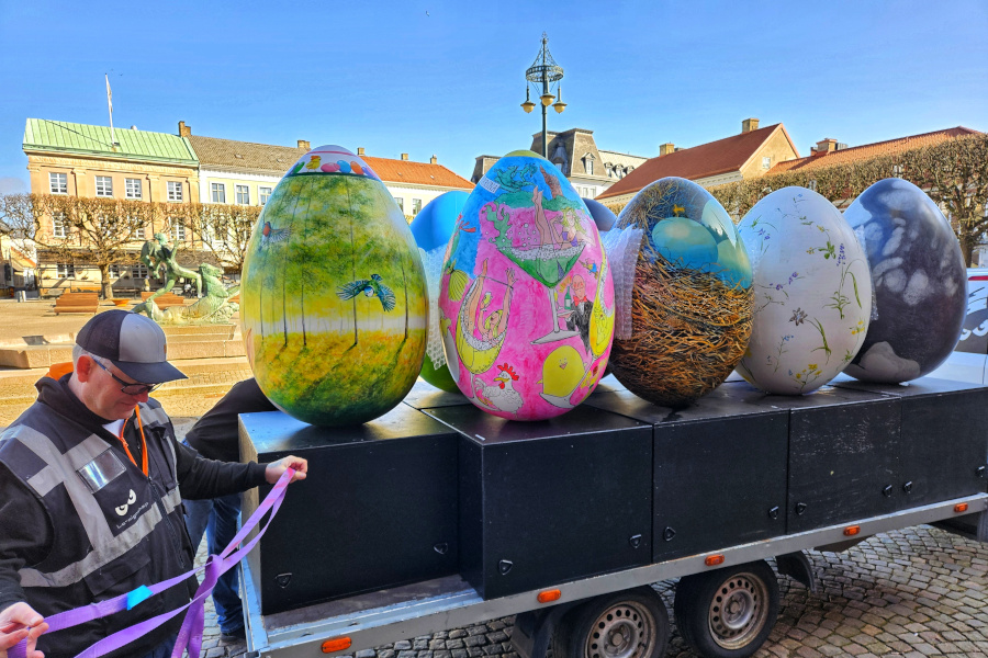 PÅSKÄGG. Påsken är på intåg och som så många gånger förr börjar firandet med ett riktigt färgsprakande vårtecken. De stora, handmålade påskäggen har återigen tagit plats på trappan vid Rådhuset, till glädje för både Landskronabor och besökare.
