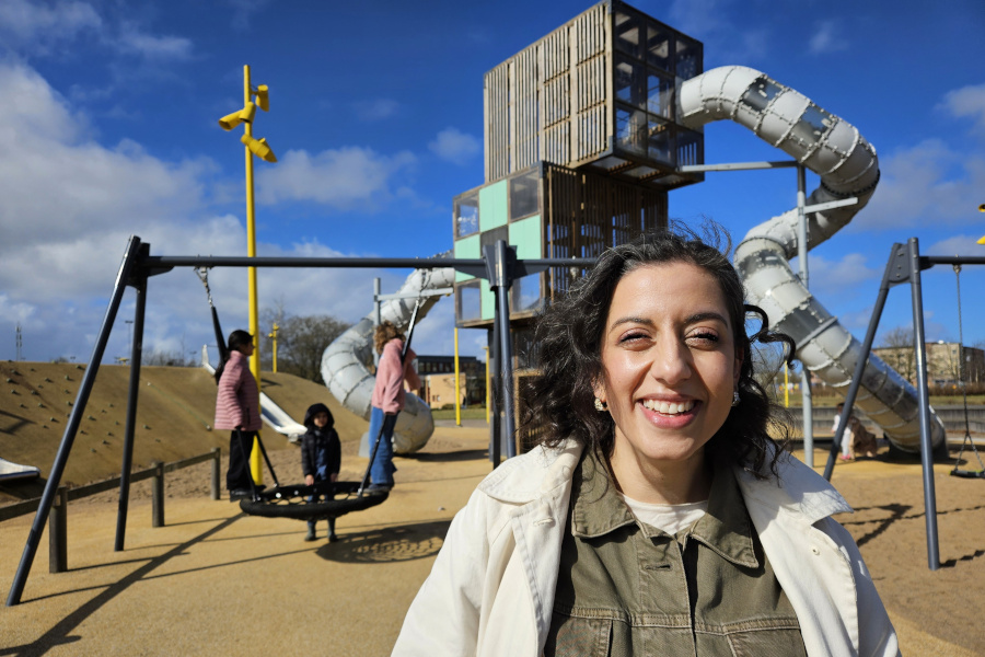 Utbildningsminister Simona Mohamsson visade på tisdagen intresse för Koppargården där hon besökte såväl en lekplats som en tvättstuga och en nyrenoverad enrumslägenhet.