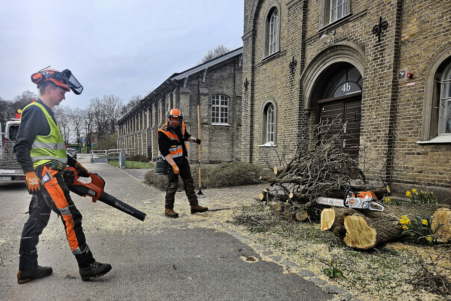 Axel Hansson och Markus Sjödahl städar upp efter utfört arbete.
