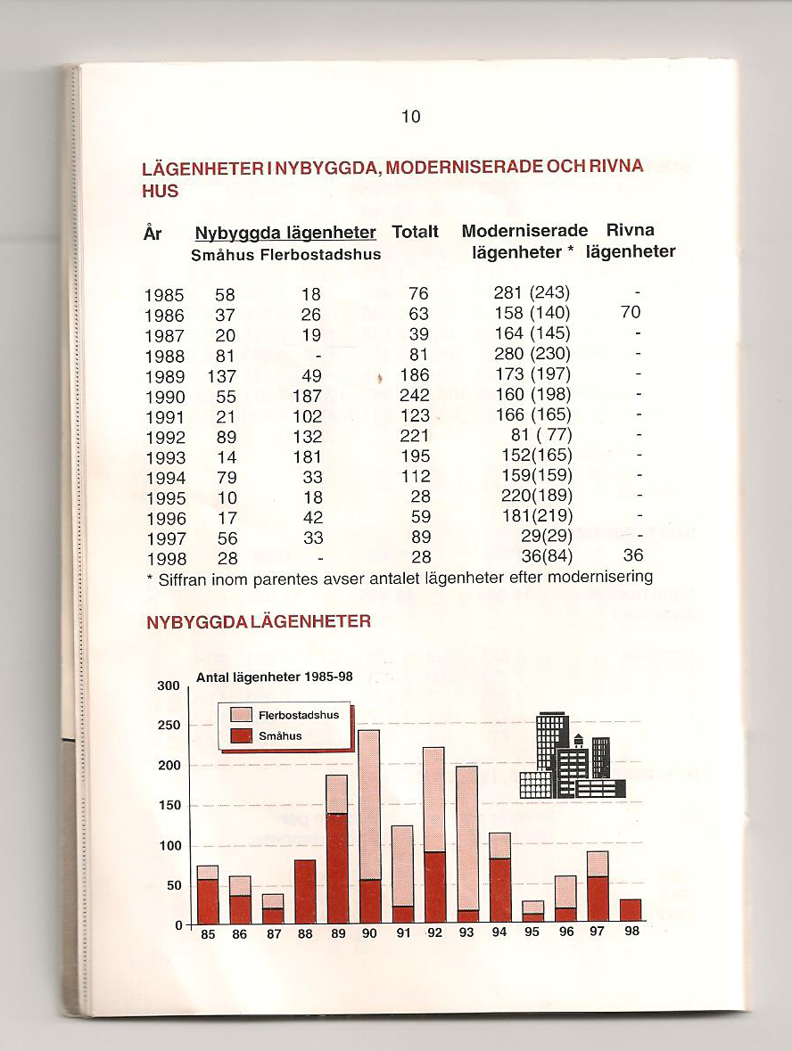 Befolkningen minskade med c:a 3.000 personer från 1976 till 1986 (35.284 lägst) och trots detta bygges ett stort antal nya lägenheter i staden. Det handlar om c:a 1.300 lägenheter åren 1986 – 1994 (se nedan). Denna omständighet talas det tyst om.